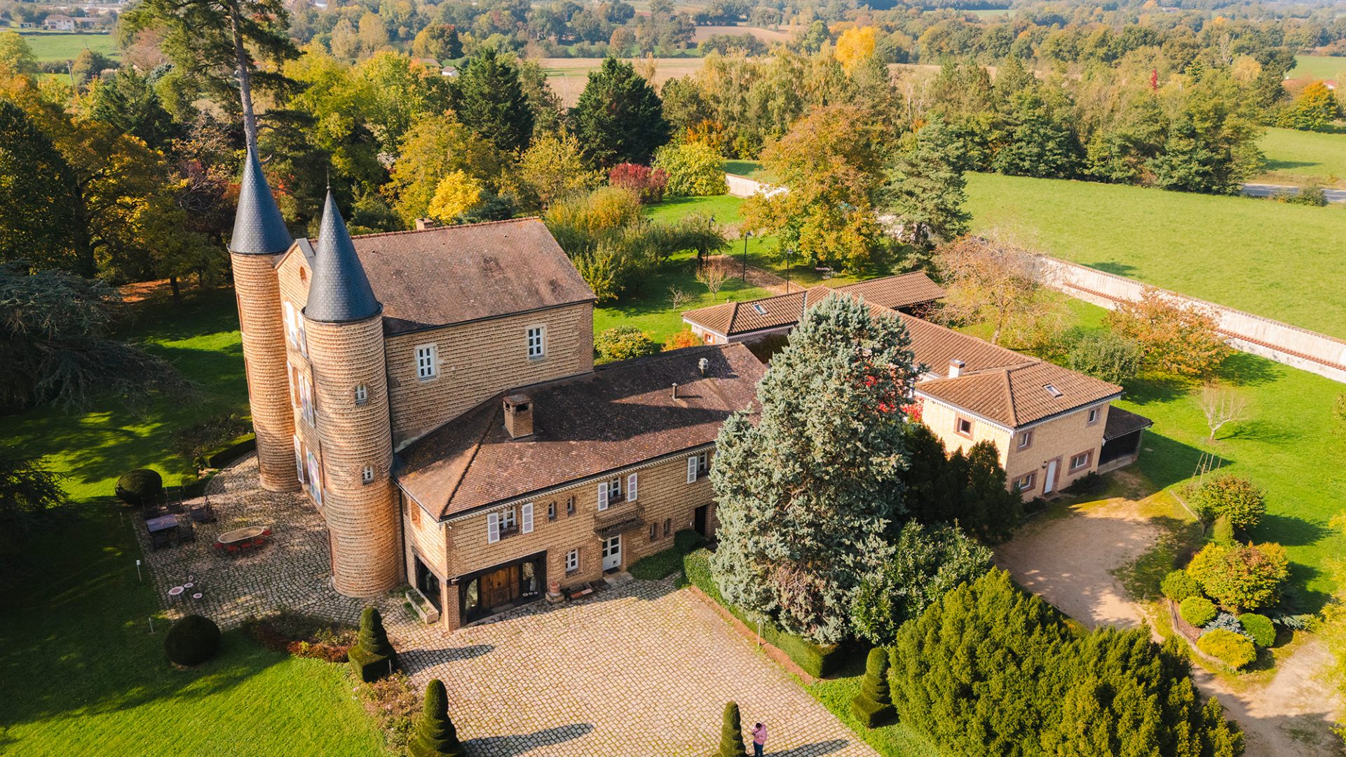 Situé à Châtillon-sur-Chalaronne, au cœur de la Dombes, le Château de Bissieux est facilement accessible, que vous veniez pour un week-end ou une parenthèse prolongée. Entre nature et patrimoine, vous rejoignez ce lieu paisible niché dans un parc de 9 hectares, à moins d’une heure de Lyon et de Mâcon, et à moins de deux heures de Genève.