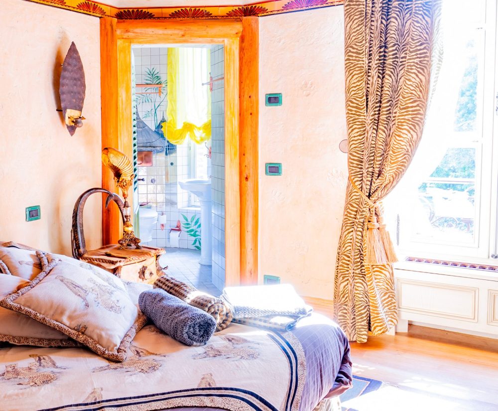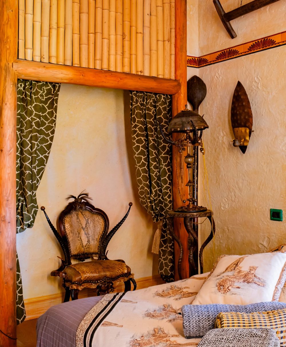 Cette chambre entièrement ornée d’objets et souvenirs rapportés d’Afrique rappelle le parcours extraordinaire des explorateurs de la mission Marchand.